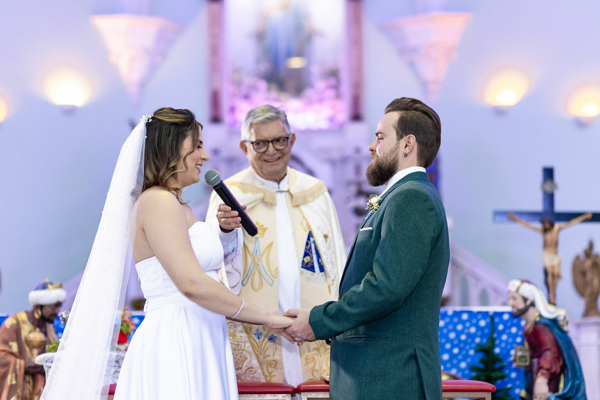 A cerimônia religiosa, marcada pela emoção e votos sinceros, celebrou o amor do casal.