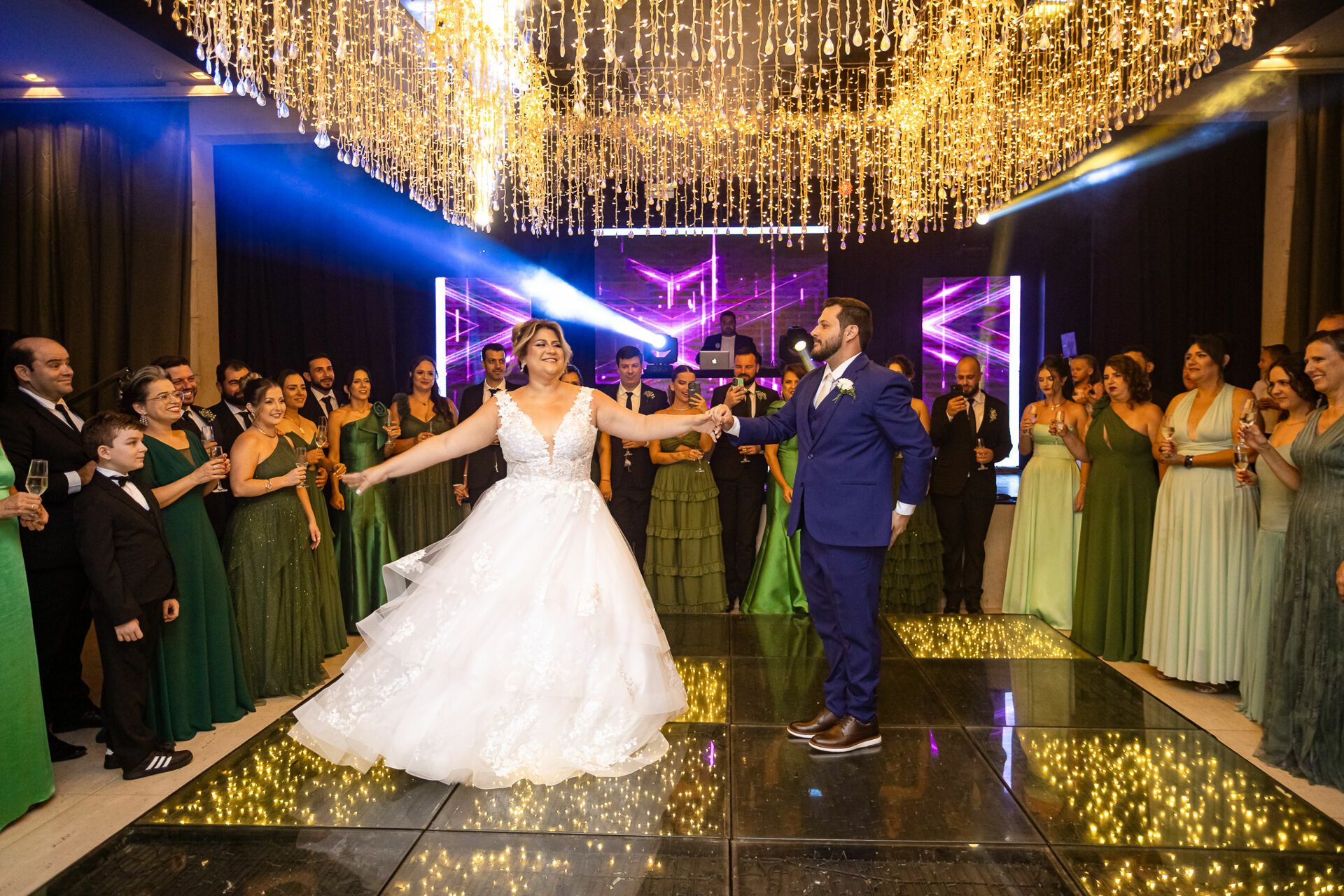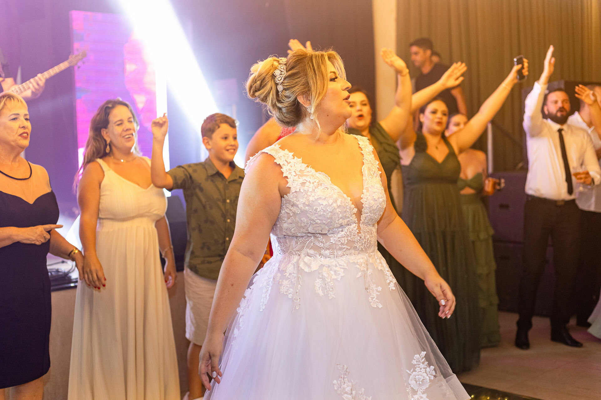 Após a cerimônia, a festa seguiu para o Spazio Bianchi, um espaço elegante e acolhedor que foi o cenário perfeito para a continuação da celebração. A decoração impecável, a música contagiante e a energia vibrante dos convidados transformaram o local em um verdadeiro palco de felicidade. Risadas, abraços apertados e muita dança embalaram a noite, criando memórias que ficarão gravadas para sempre na história do casal e de todos que tiveram o privilégio de participar.
